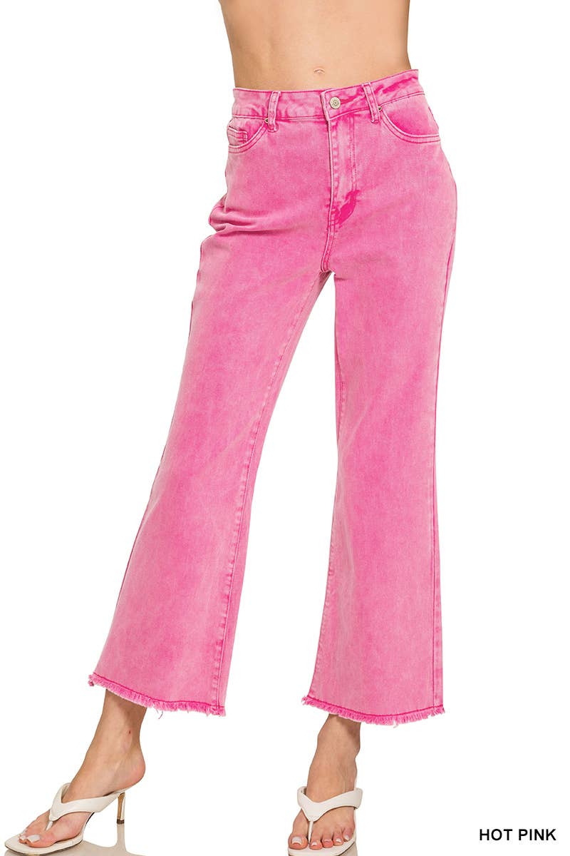 Acid Washed High Waist Frayed Hem Bootcut Pants