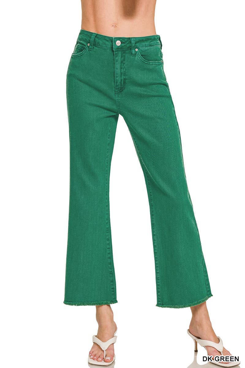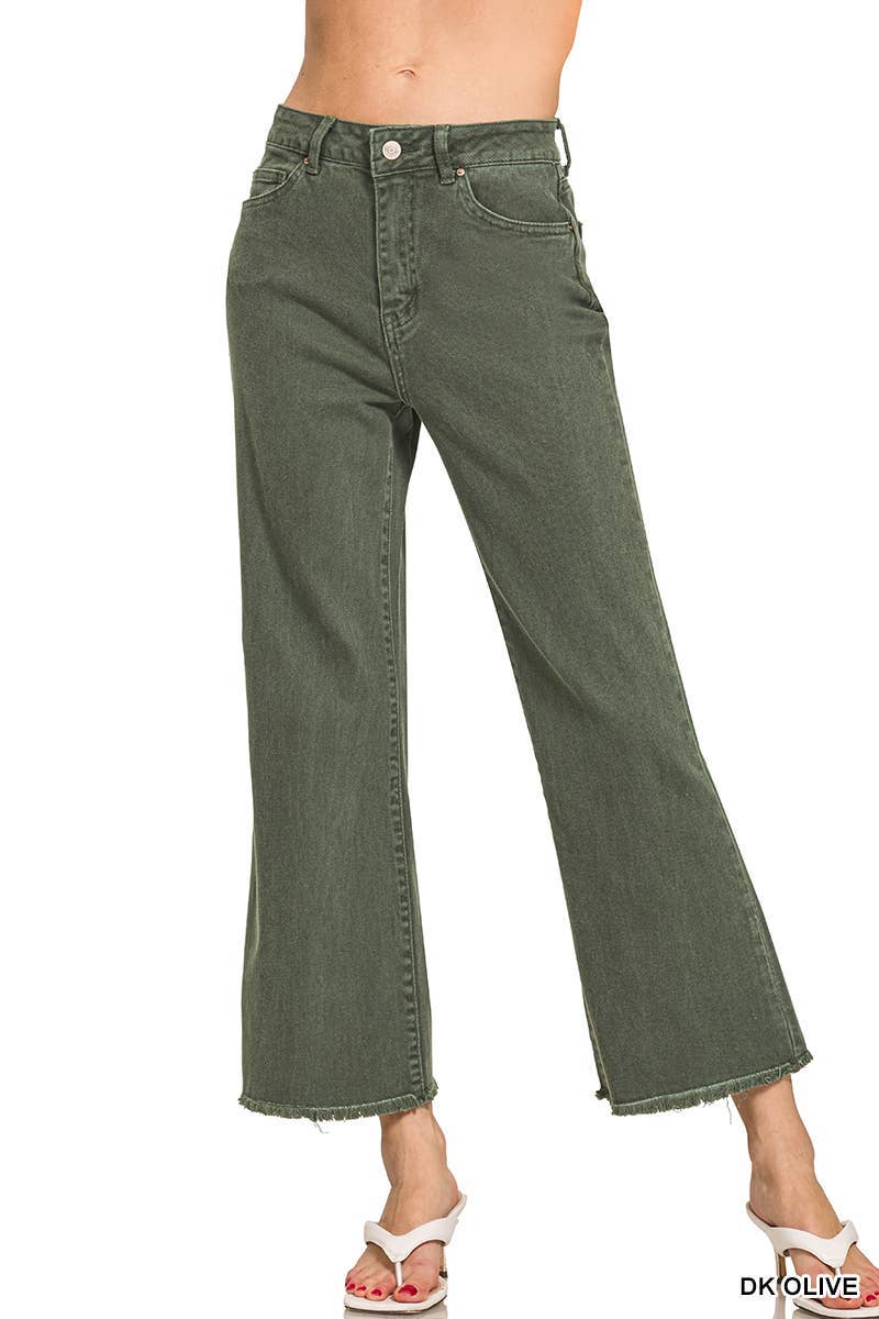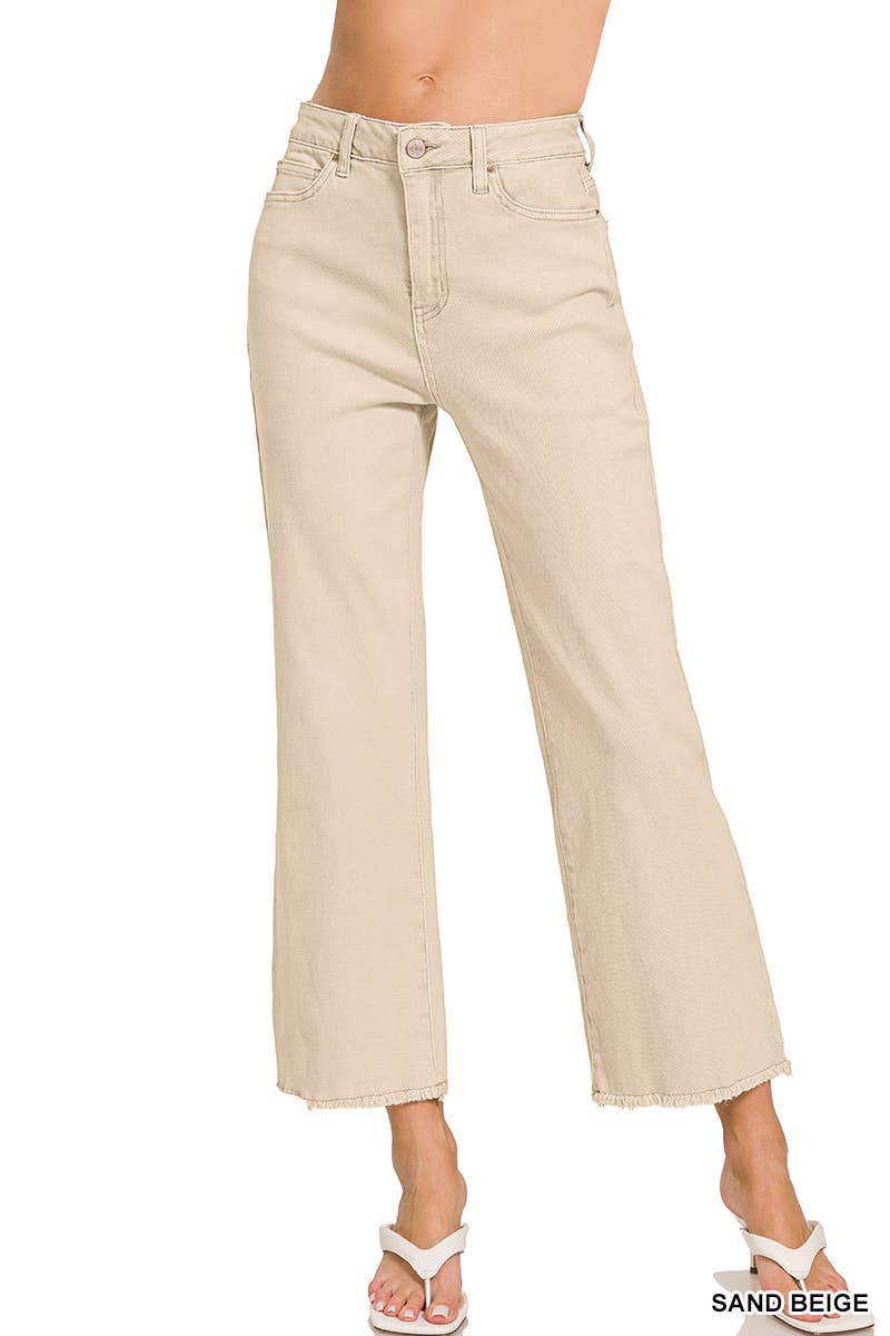 Zenana Acid Washed High Waist Frayed Hem Bootcut Pants: SAND BEIGE