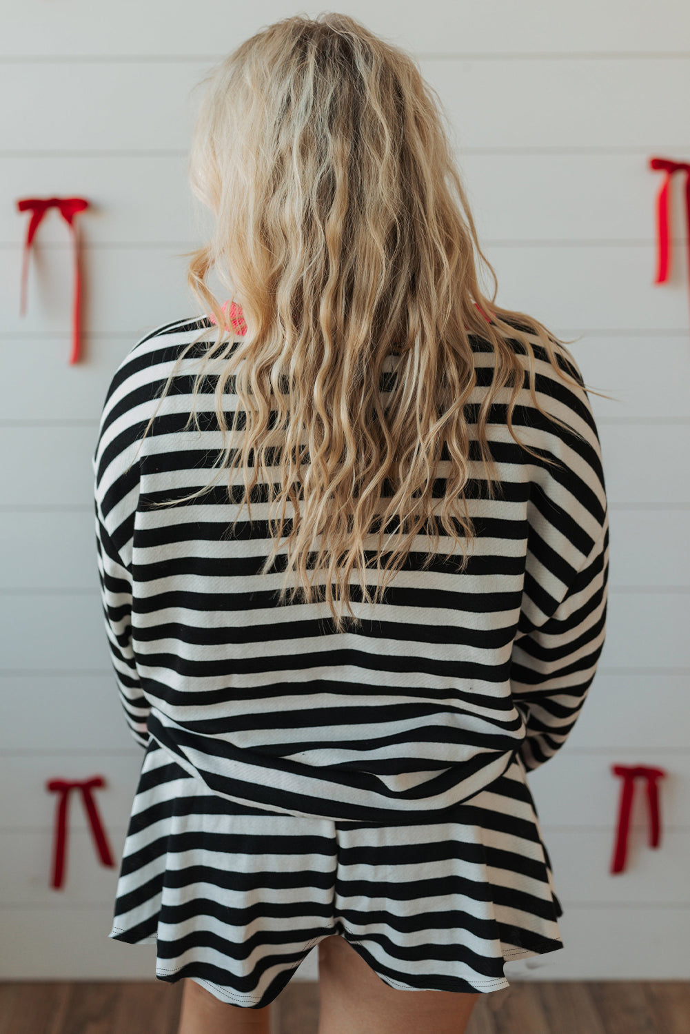 Black Stripe Contrast Edge Pullover and Shorts Plus Size Set