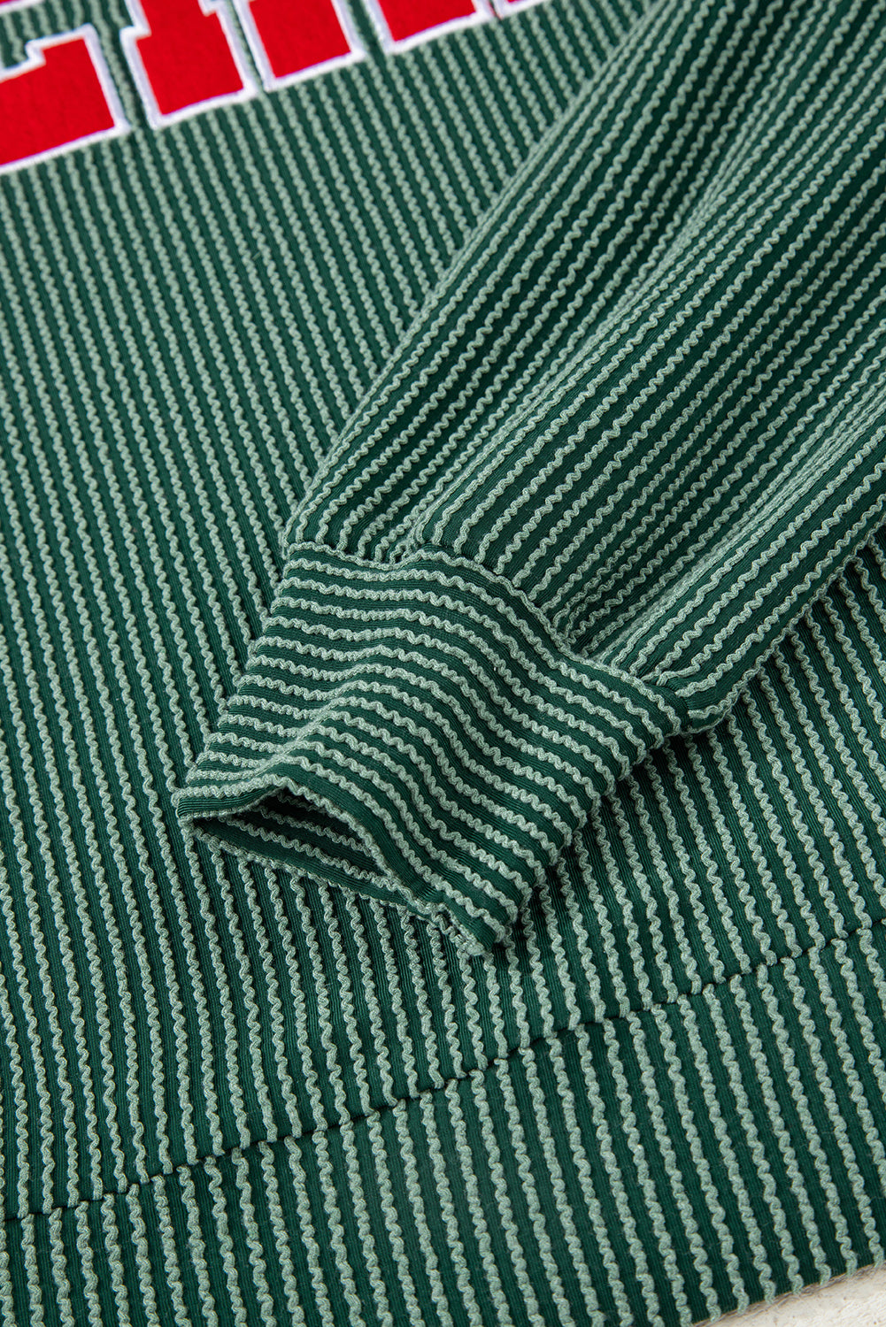 Blackish Green Twisted Rib Merry Letter Graphic Loose Long Sleeve Top