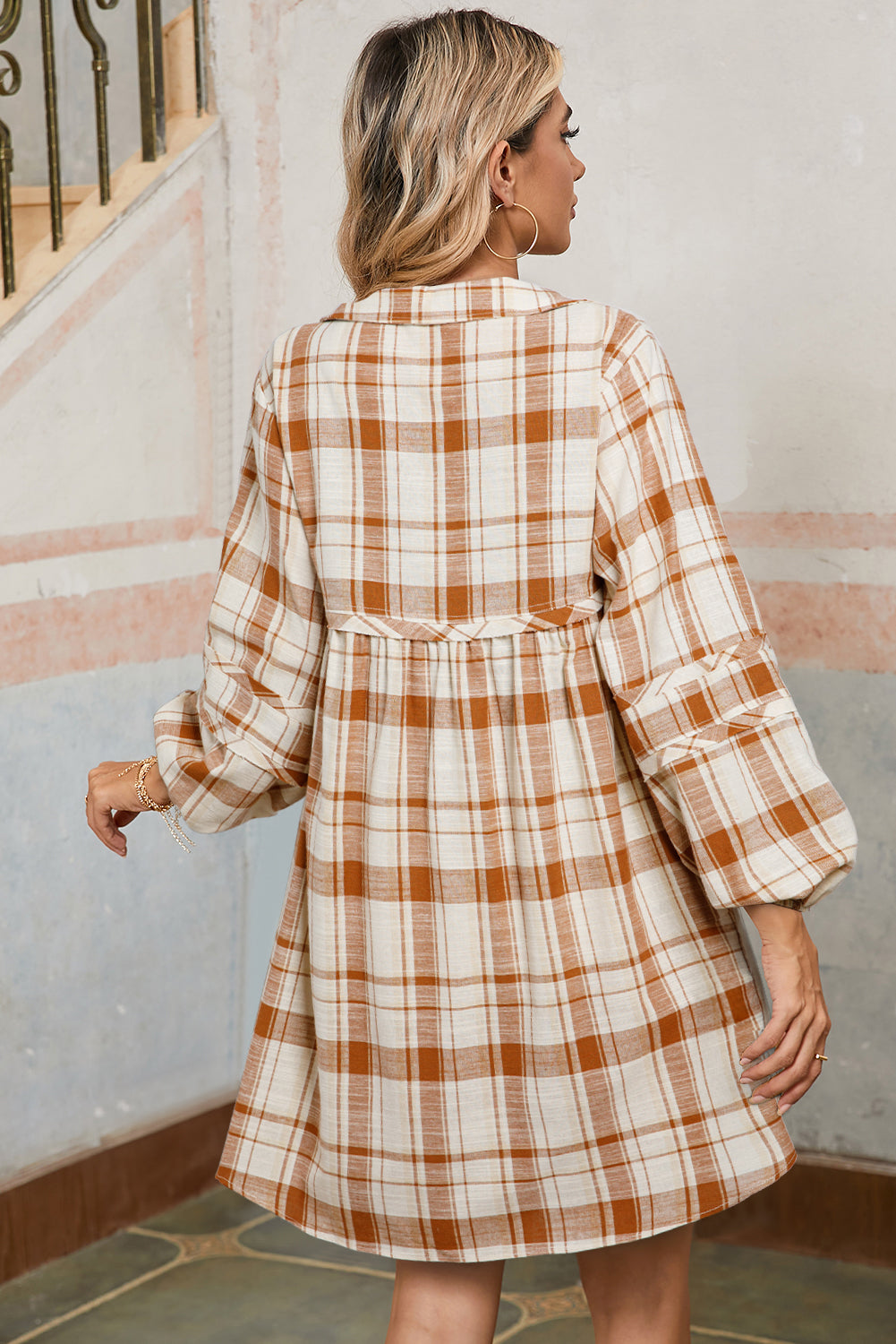 • Embrace a charming blend of casual and chic with this dress, featuring a timeless plaid print that exudes effortless style and sophistication.