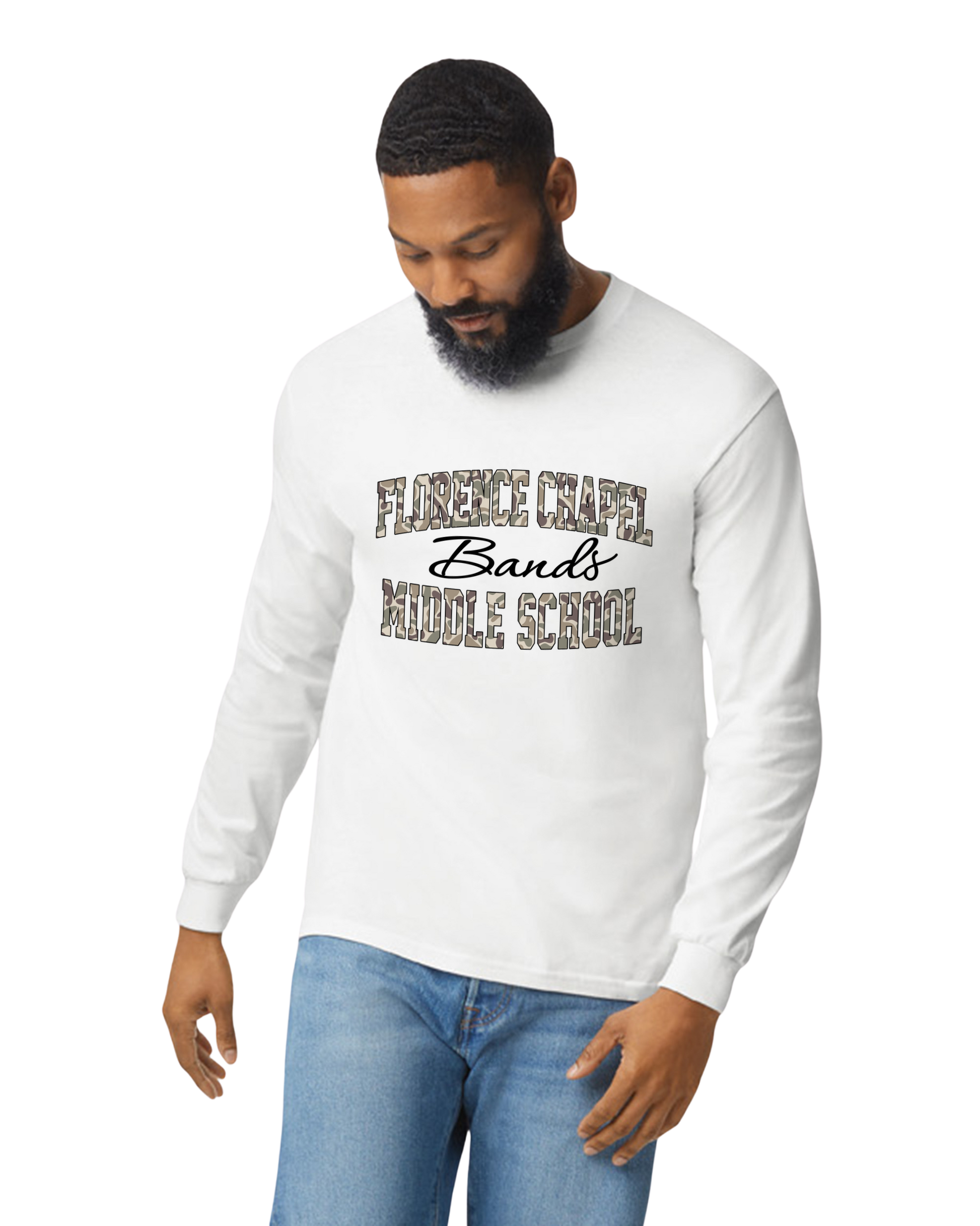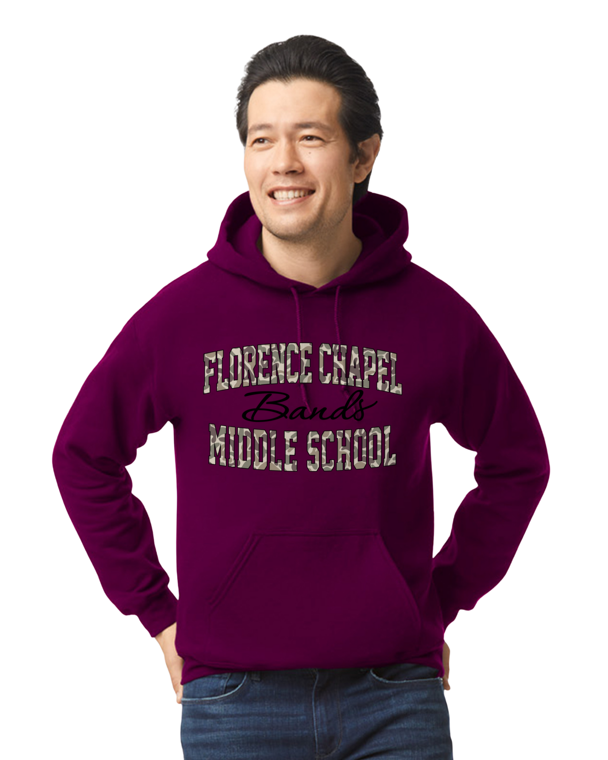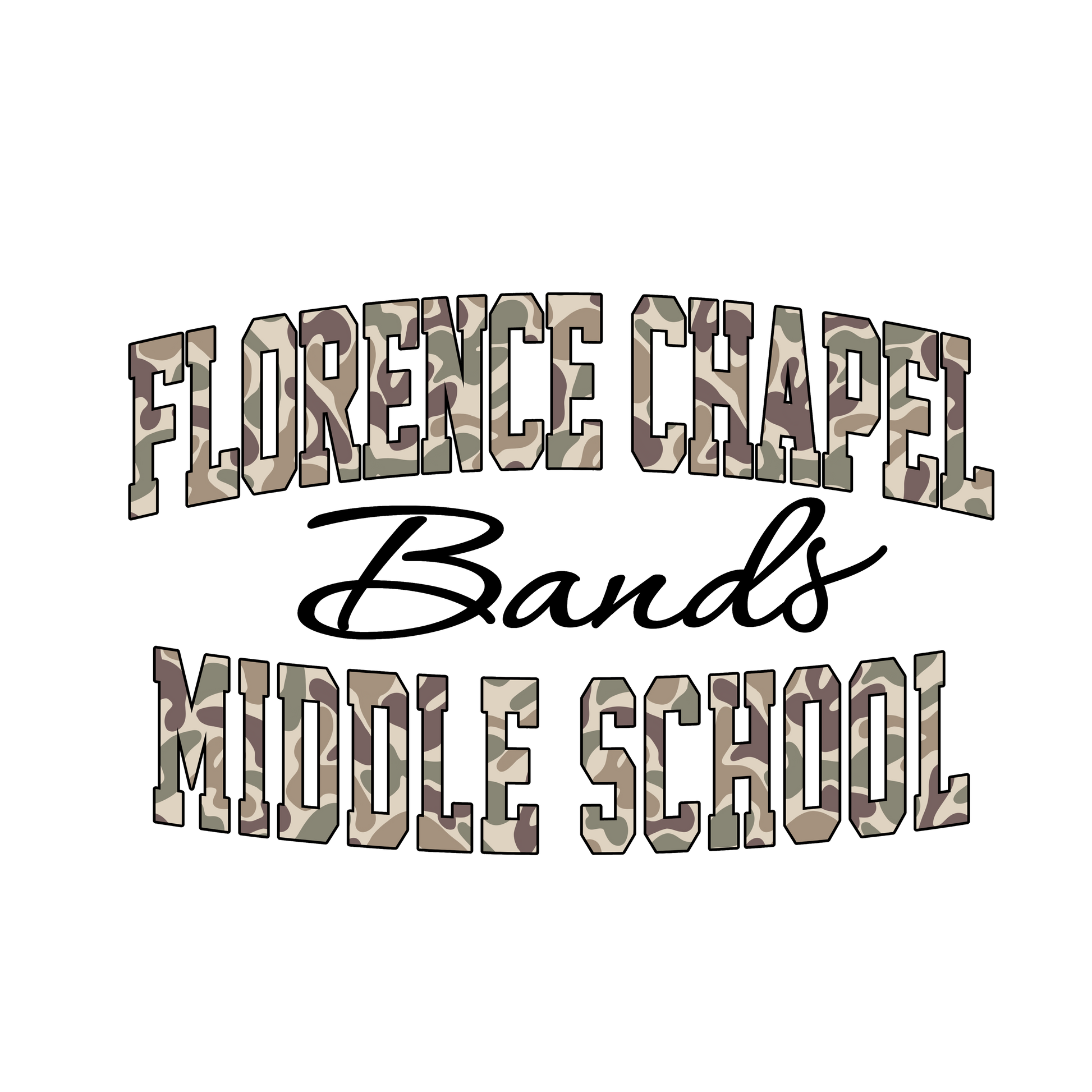 Show your school spirit with our exclusive Florence Chapel T-shirt Fundraiser! This custom design features “Florence Chapel” Green Camo Block Lettering and Elegant Cursive Bands in the middle.