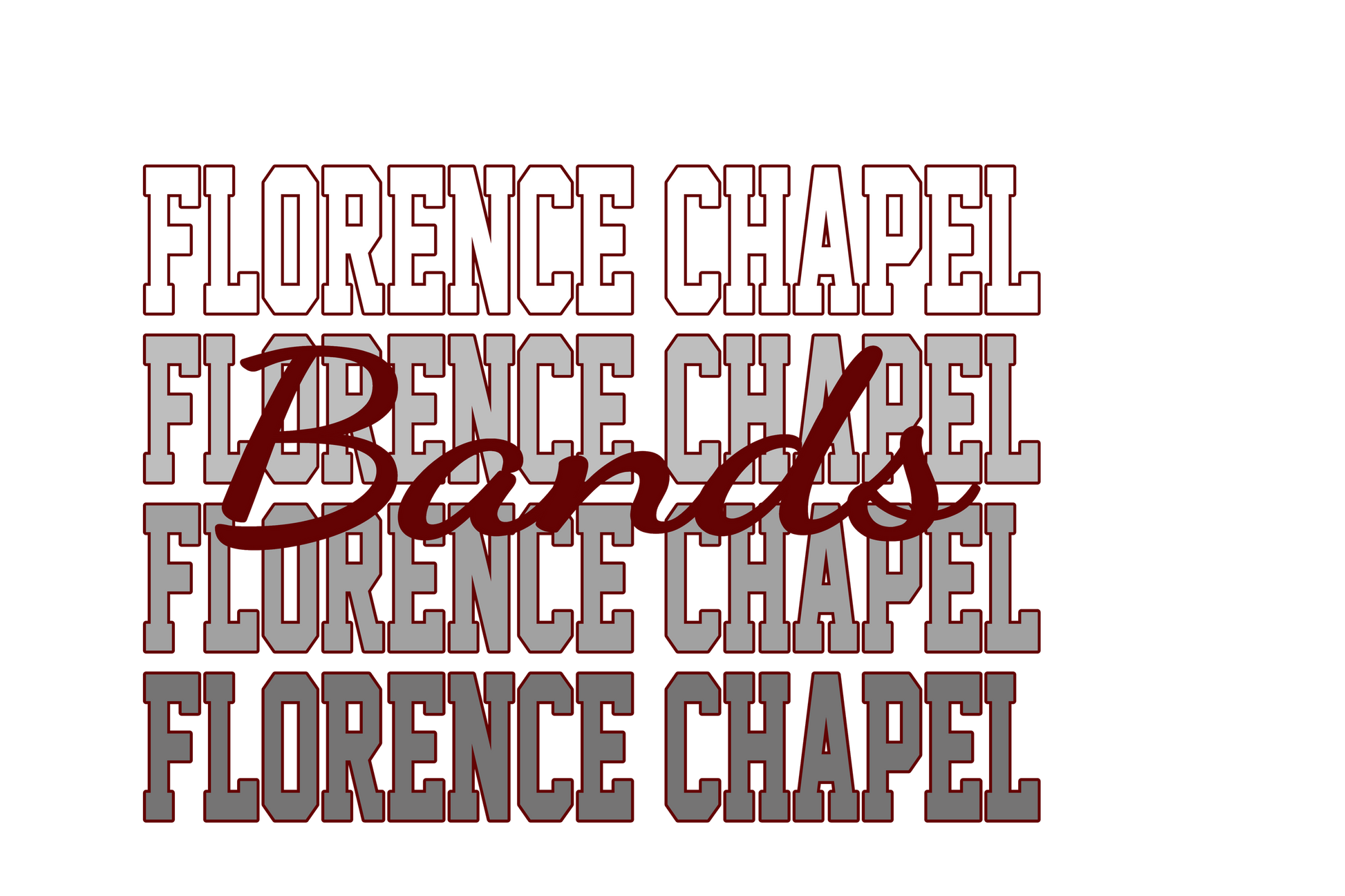 Show your school spirit with our exclusive Florence Chapel T-shirt Fundraiser! This custom design features “Florence Chapel” repeated across the front with “Bands” written in elegant cursive — a perfect blend of pride and style.