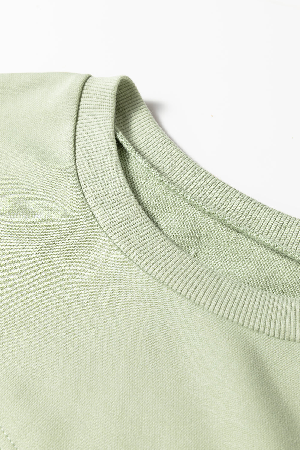 Laurel Green Floral Plaid Mixed Sleeve Raw Edge Relaxed French Terry Top