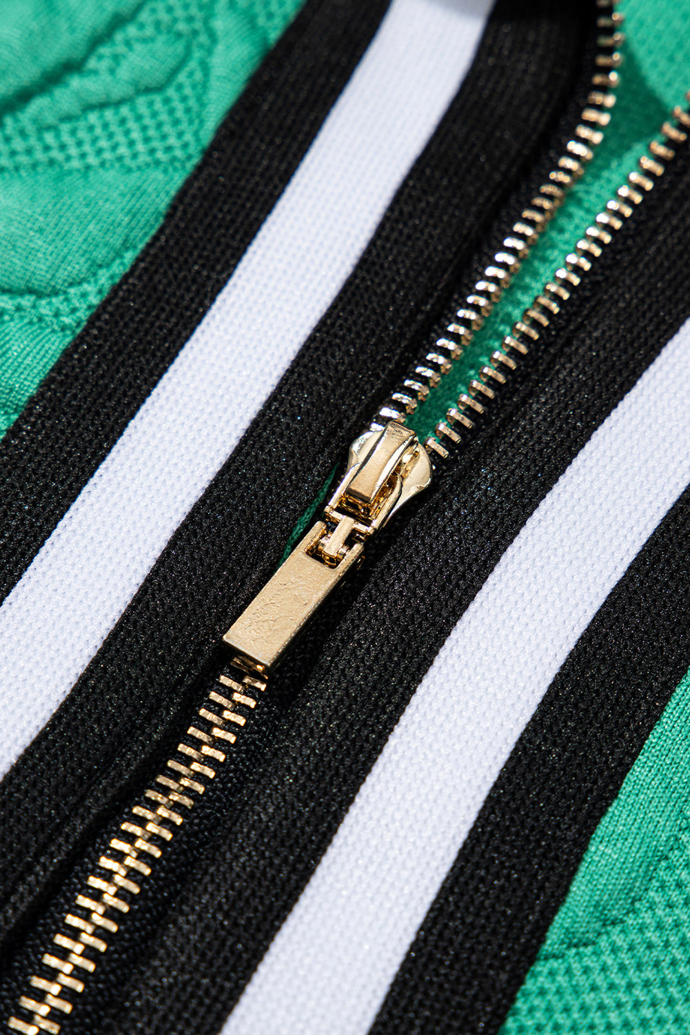 Sea Green Jacquard Textured Quarter Zipper Pop of Color Neckline Dress