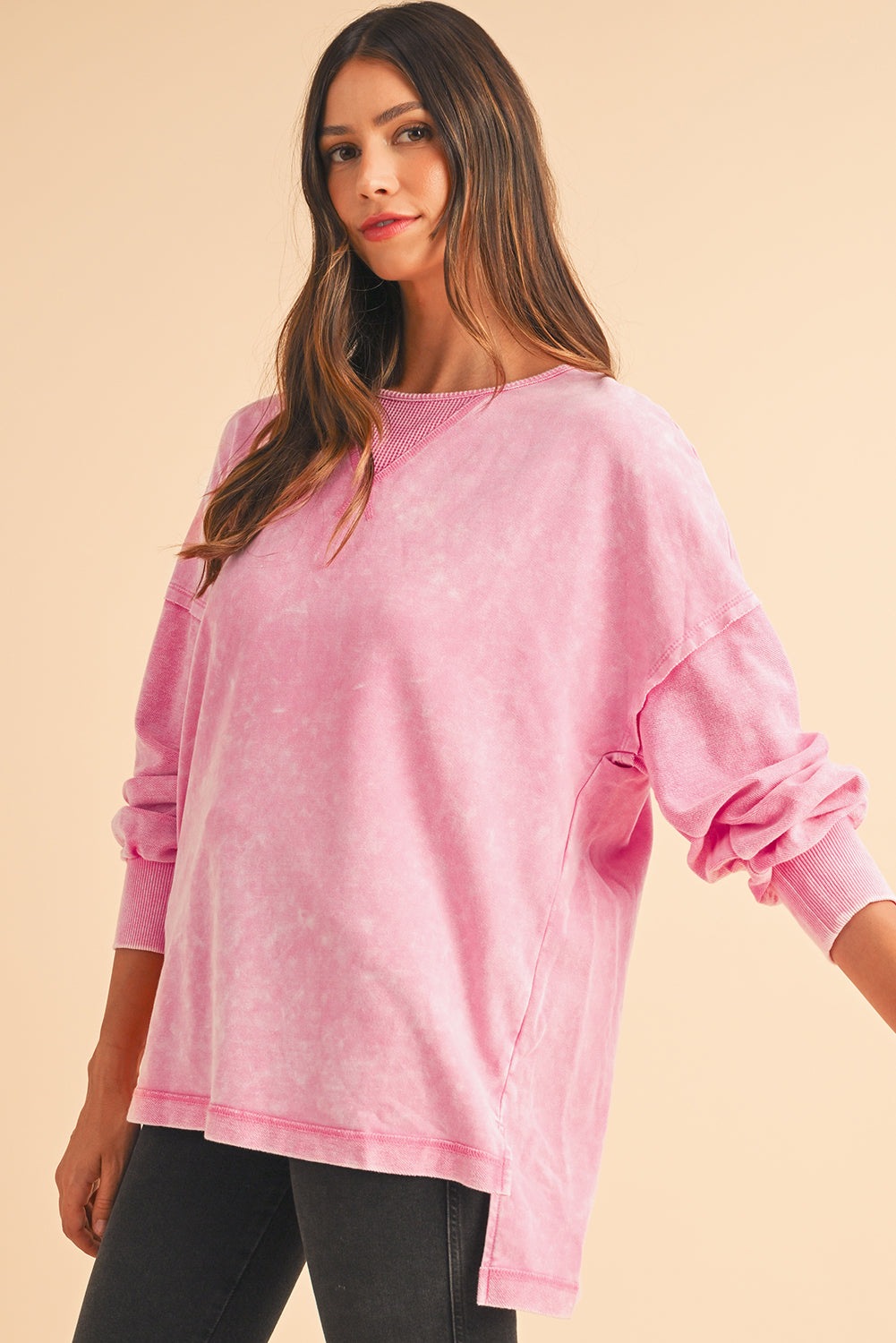 Strawberry Pink Mineral Wash Drop Shoulder Oversized Sweatshirt