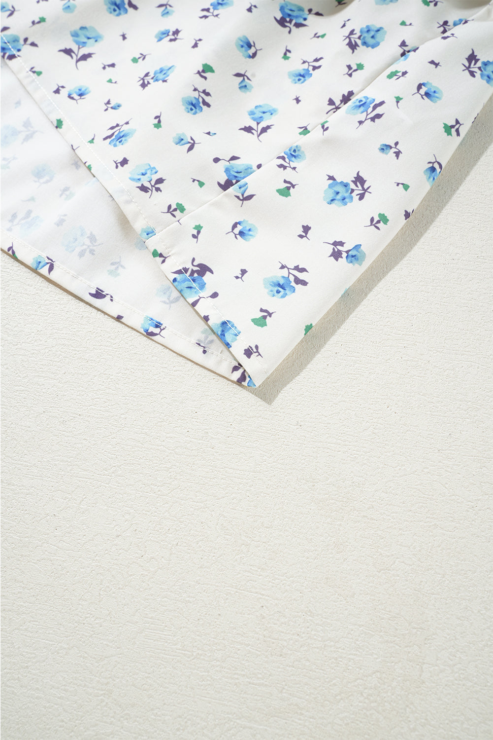 White Boho Ditsy Floral Puff Sleeve Pleated Shirt