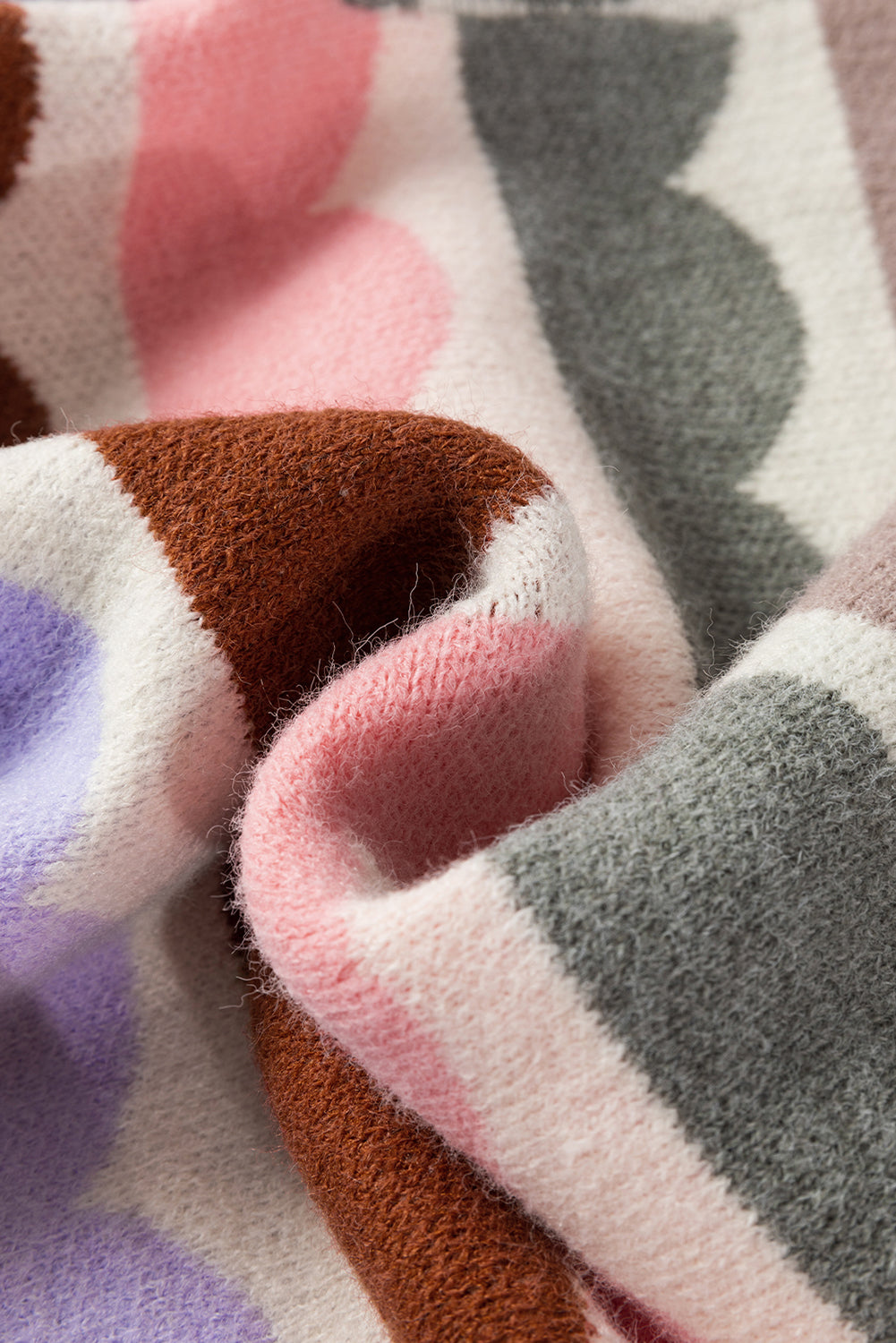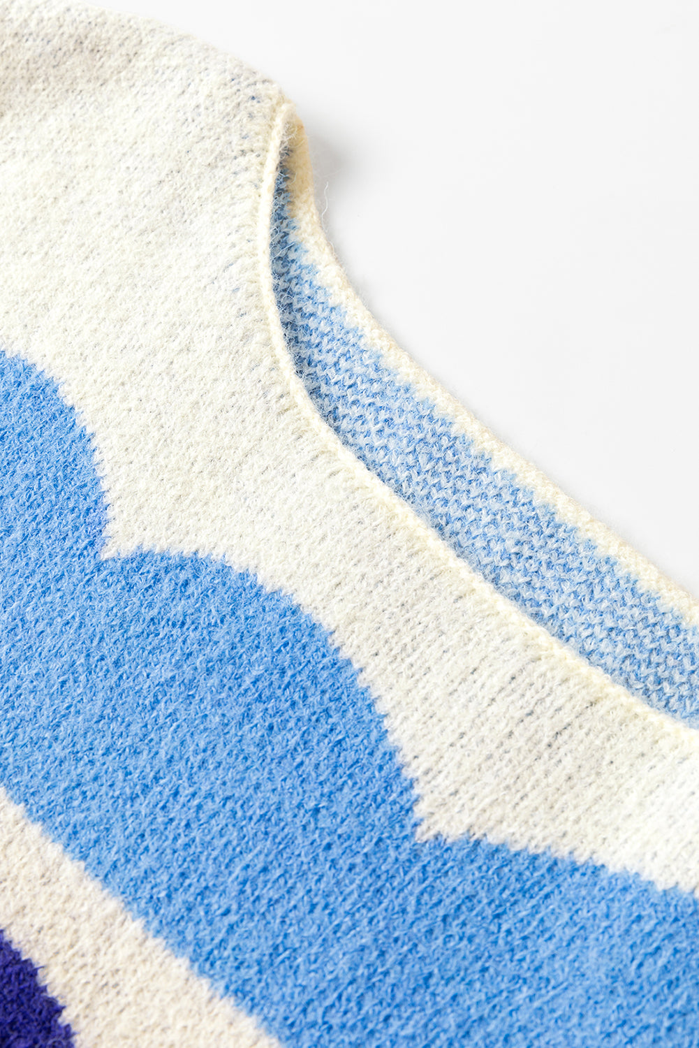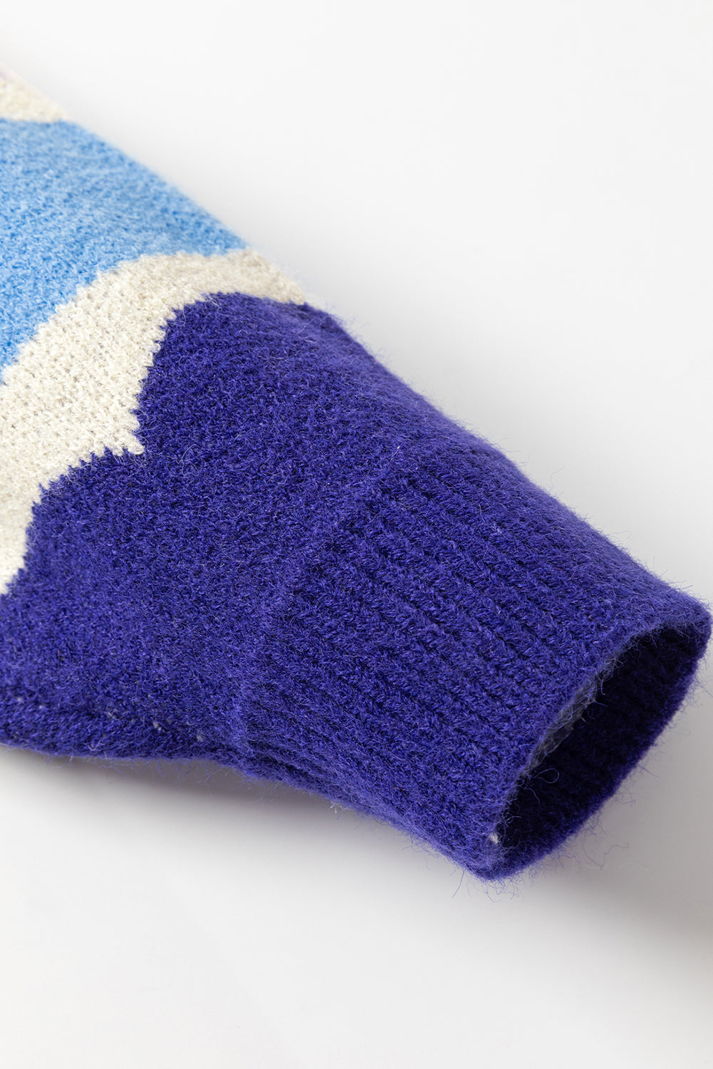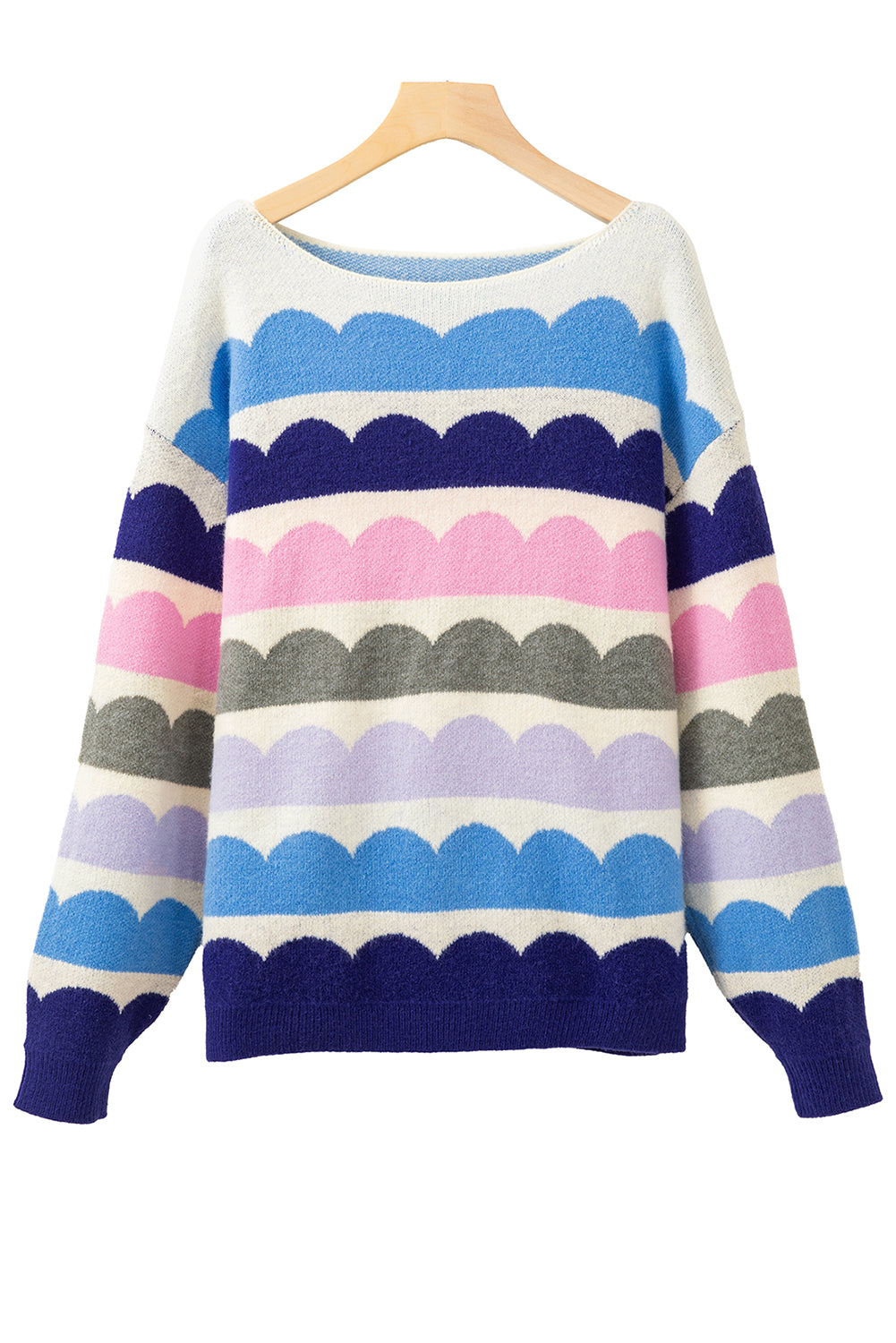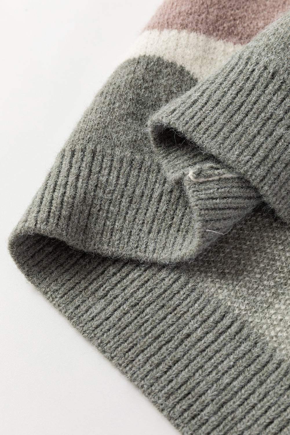 • This sweater features a unique combination of stripes and colorblocking, creating a dynamic and eye-catching look that is both trendy and stylish.